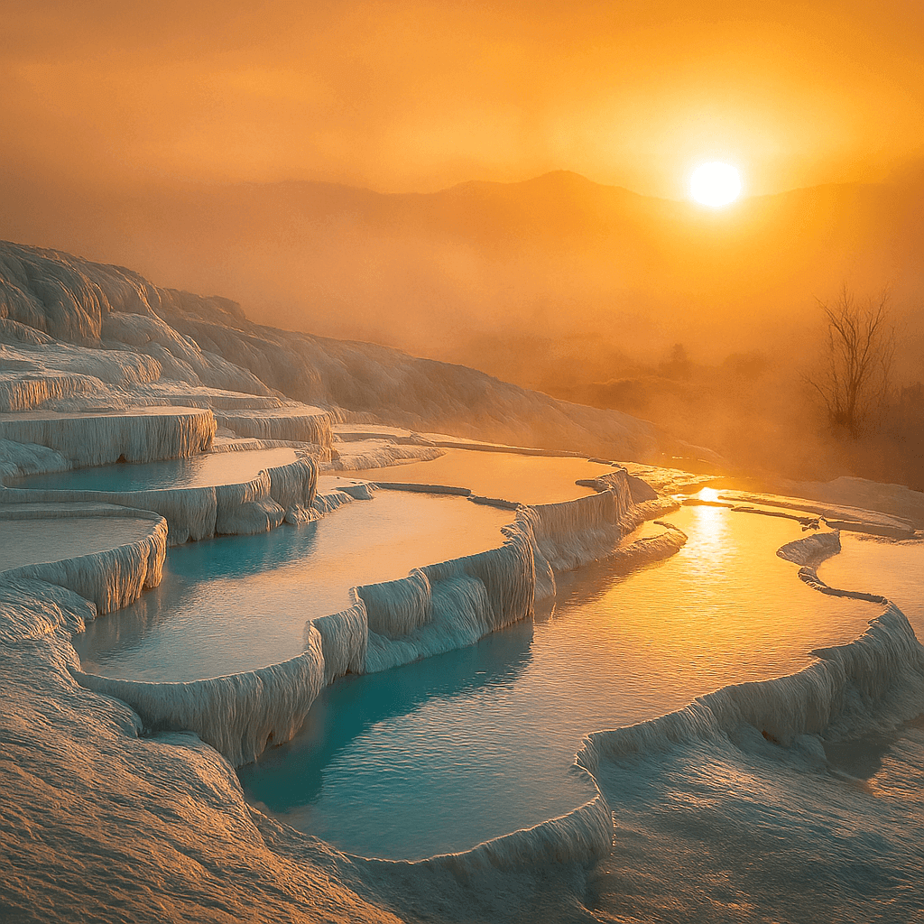 Pamukkale با تراسهای سفید تراورتنی و آبهای گرم معدنیاش، یکی از جادوییترین مکانهای گردشگری با حال و هوای فانتزی در دنیا شبیه افسانهها را تشکیل میدهد. هر تراس مثل استخر کوچکی از فیروزگی خالص است که در تابستان هم همچون برف میدرخشد و دعوت میکند پا در آبهای شفابخش بگذارید.